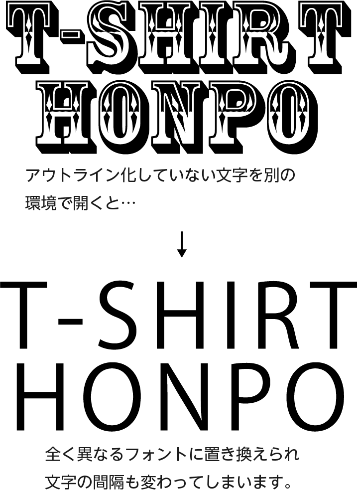 製作されたデザイン内に文字がある場合、必ずフォント(書体)をアウトライン化してください。