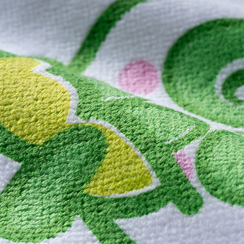 プリント色をキレイに出したい場合は、白色の生地がおすすめです。 カラー生地に印刷した場合、下地の色の影響で本来のプリント色の印象が変わります。